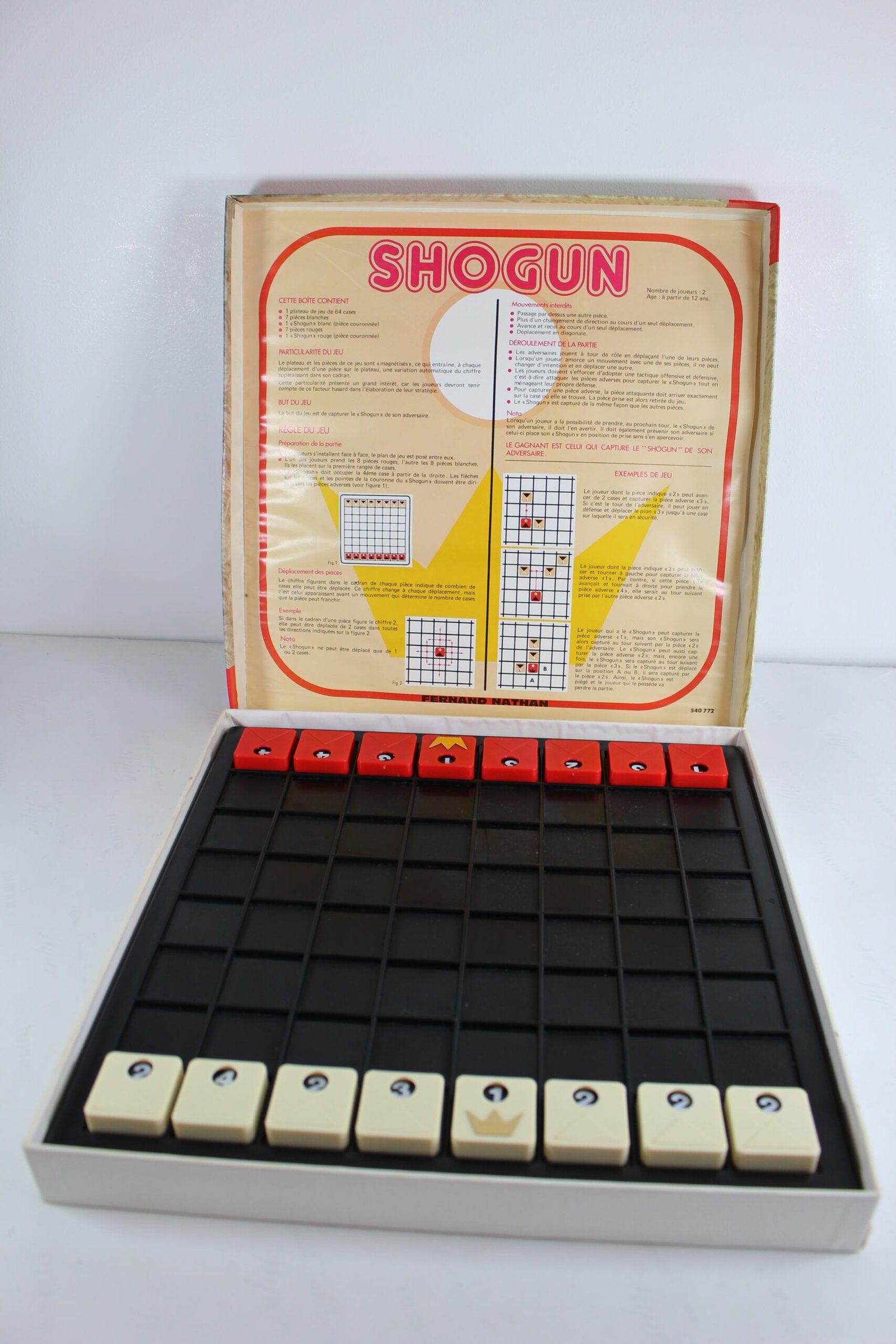 Il s’agit d’un jeu de pions, mêlant réflexion et chance. Deux couleurs de sept « pions » et un « Shogun » s’affrontent (rouge, et blanc) sur un tablier de 8×8 cases. Le but est de capturer par prise les pions de l’adversaire.